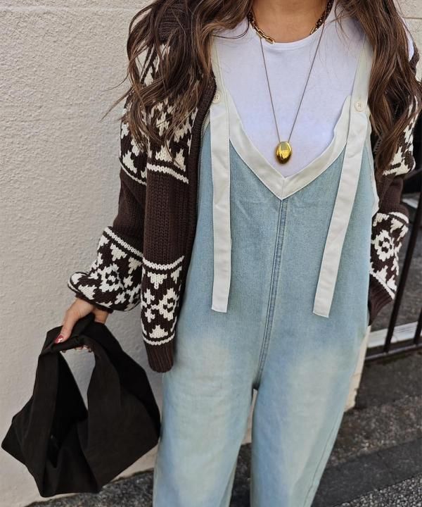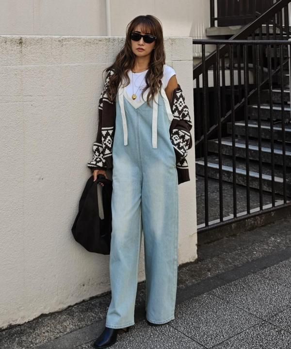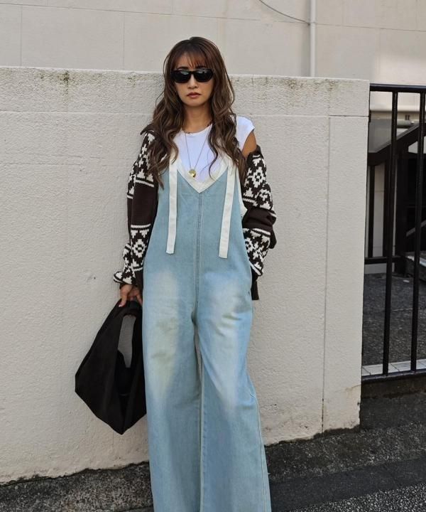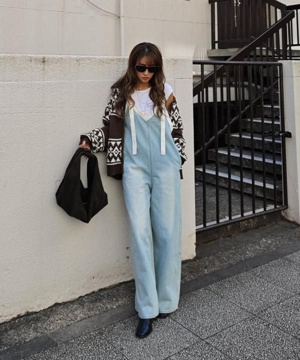 ✓Vネックデザインで抜け感◎大人カジュアルが叶うサロペット