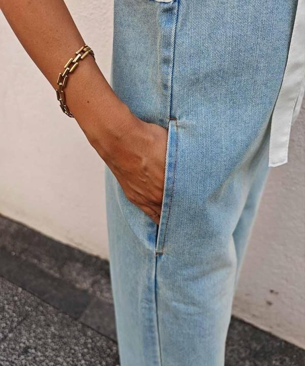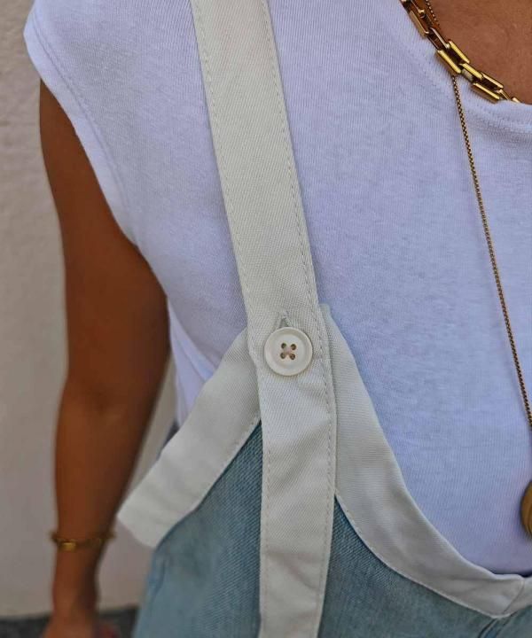 V neck denim overalls
